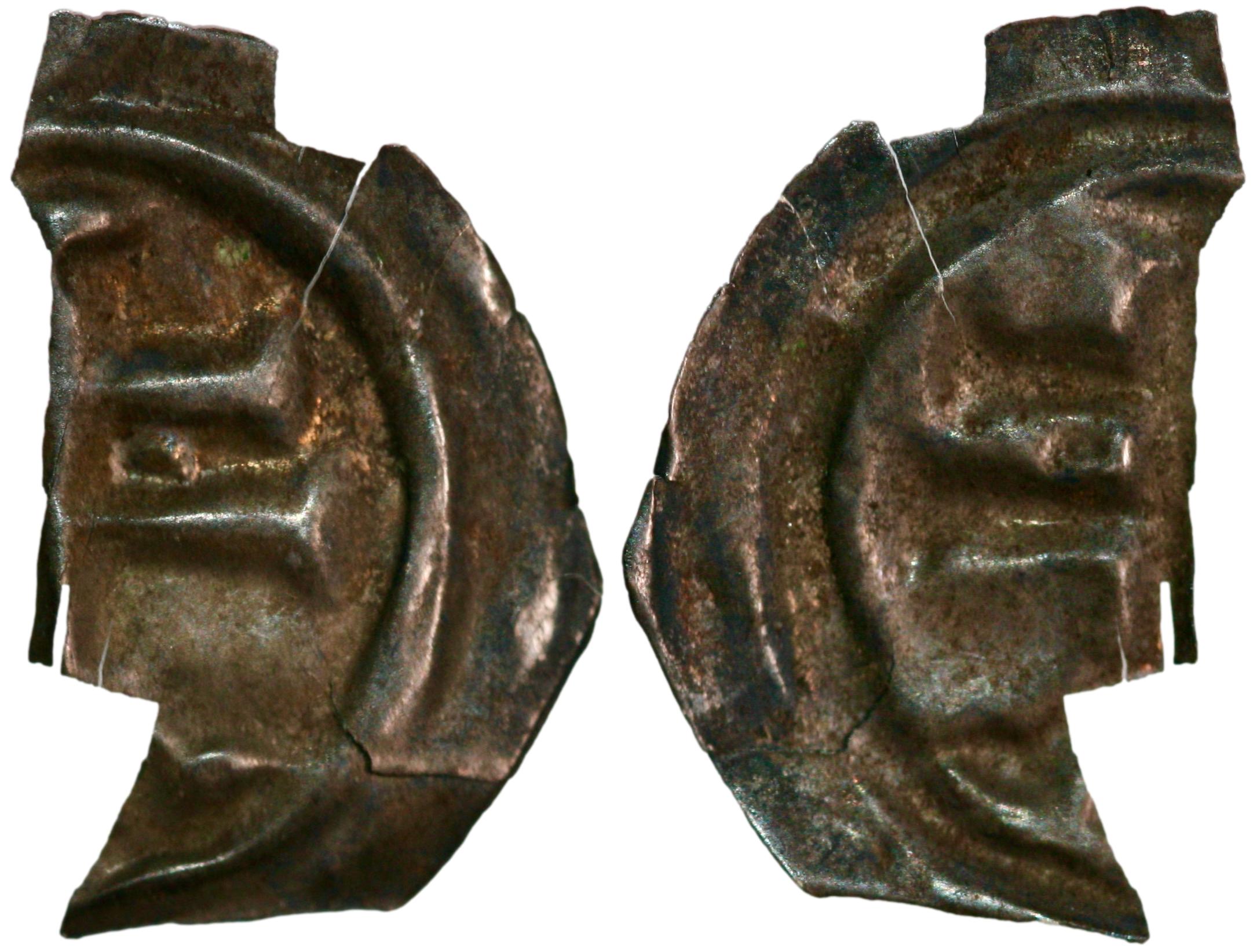 Brakteat fra 1177-1202, slått under kong Sverre Sigurdsson. Patriarkalkors. Kv. 1+. Mangler noe kant. Mest sannsynlig fra Anders Andersens myntfunn på Dæli, Norge, 1840. Denne forholdsvis sjeldne typen, som i stor grad stammer fra Dæli‑skatten, ble solgt av Historisk museum i Oslo på 1800‑tallet. Av den grunn anses eksporttillatelser som regel å være uproblematiske å få. Schive VIII:34. 0,03 g.