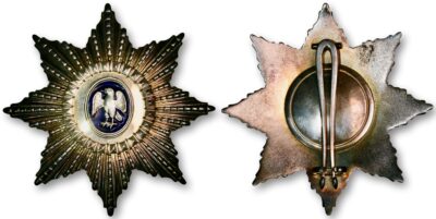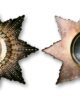 The neck badge measures 45 × 78 mm and weighs 36 grams including the ribbon; the breast star measures 69 × 69 mm and weighs 48.57 grams.