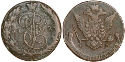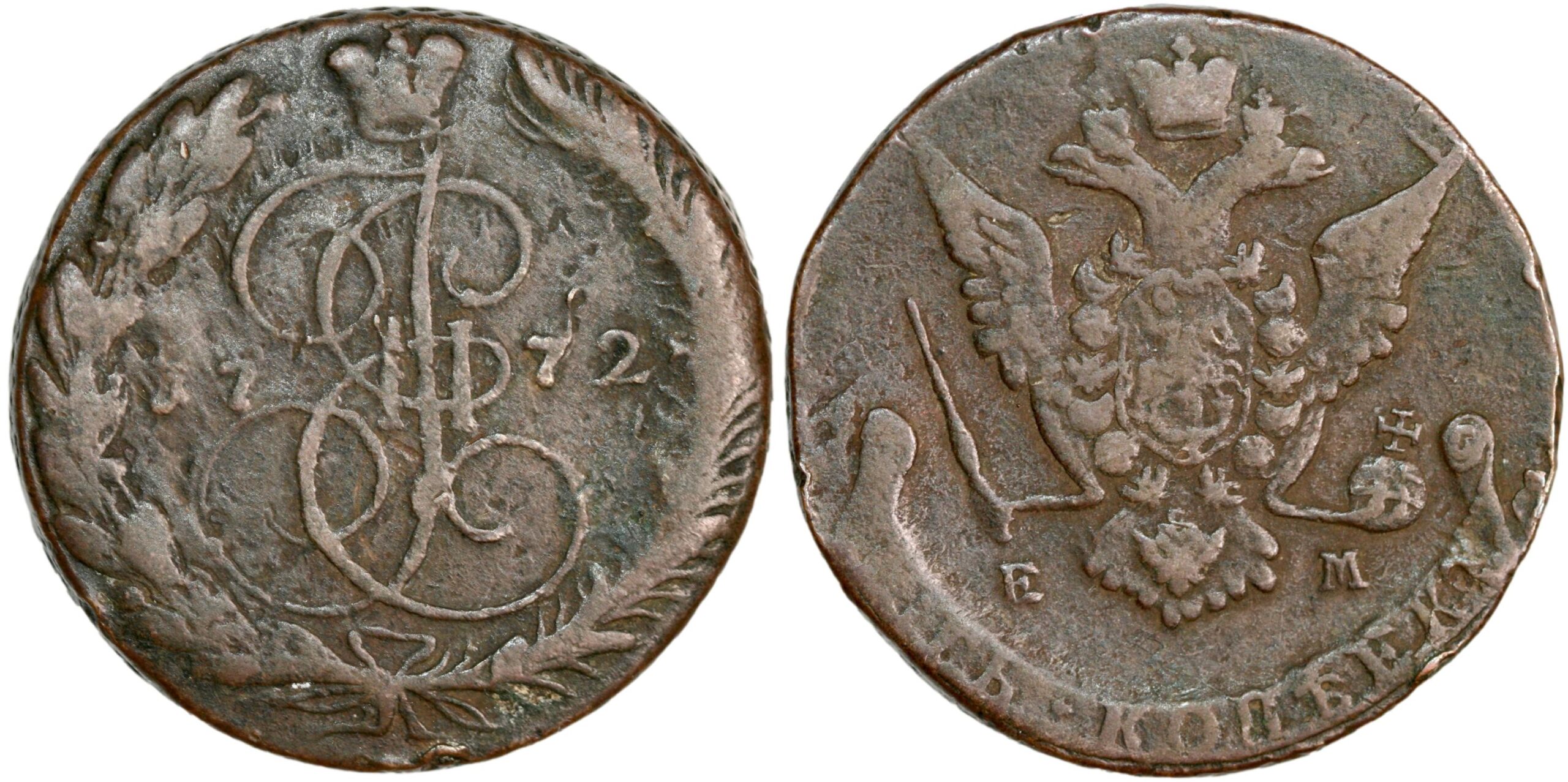 Russia, 5 kopeks dated 1772, struck under Empress Catherine II. Ekaterinburg mint. Fine condition. C# 59.3. 44,38 g.