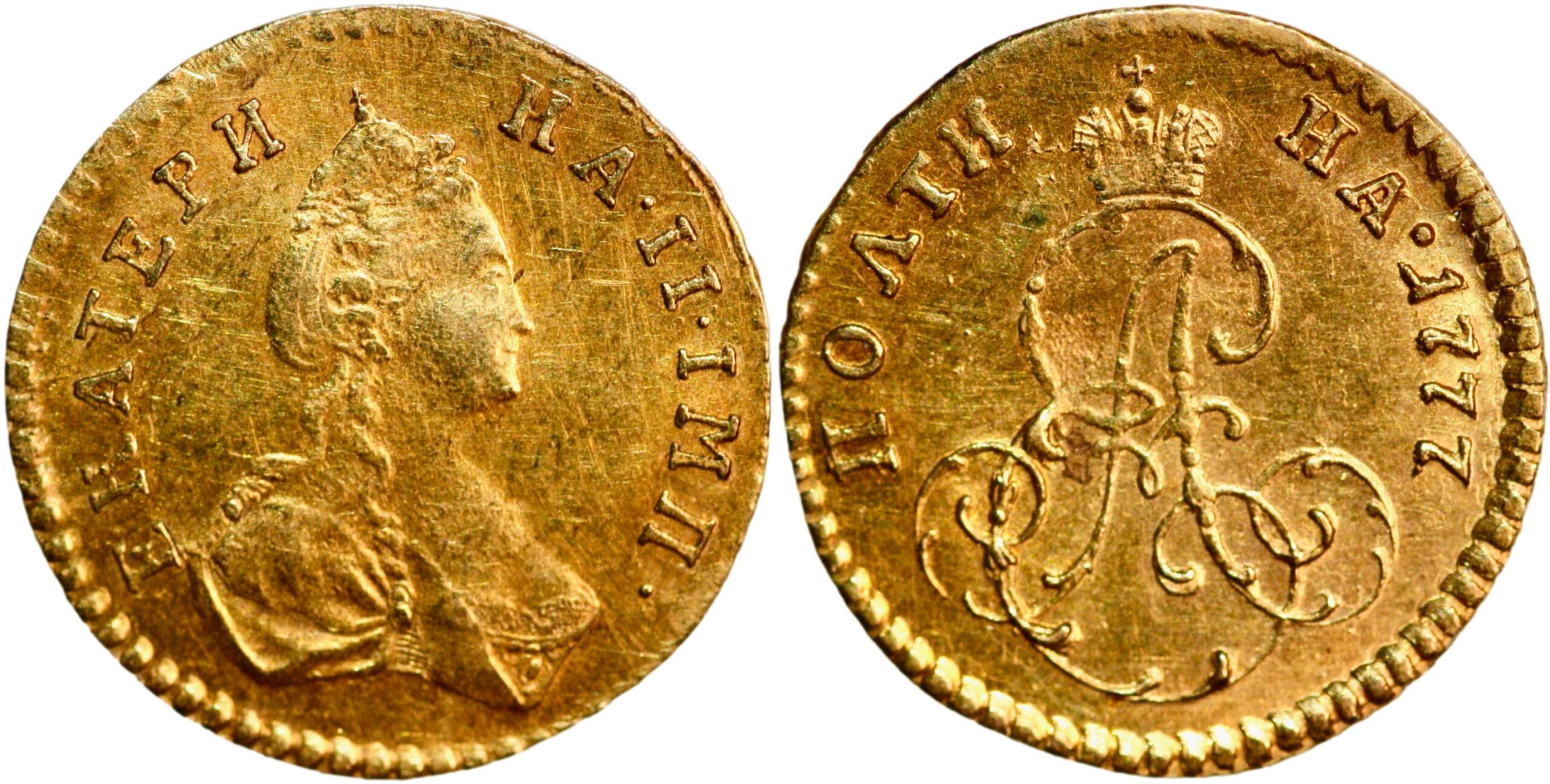Russia, poltina (gold!) dated 1777, struck under Empress Catherine II. Very Fine condition. Bitkin 116; Fr. 136; C# 75. 0,61 g.